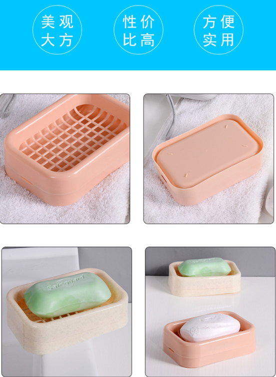 肥皂盒壁挂式沥水免打孔家用带盖卫生间不积水双格放香皂盒置物架