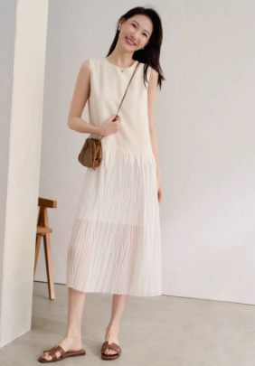 狠仙美 空灵氧气感 醋酸拼接网纱百褶设计感背心连衣裙