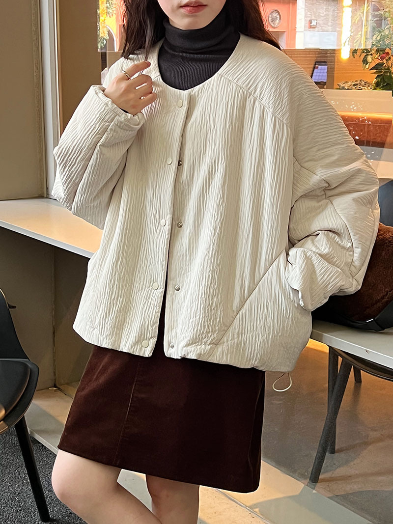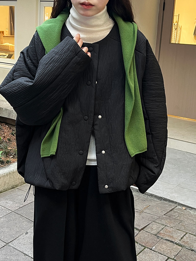 简约宽松休闲圆领短款棉服女冬季上衣棉袄夹克外套